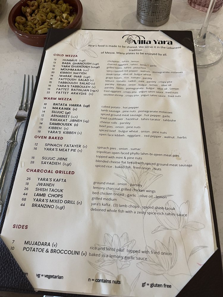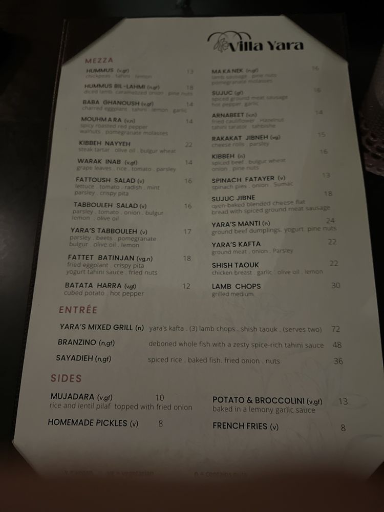 Villa Yara, a Lebanese-Mediterranean gem located in Washington, DC, offers a trendy and romantic atmosphere with excellent customer service. With a menu filled with vegan and vegetarian options, Villa Yara caters to a variety of dietary preferences. Customers rave about the flavorful dishes, such as grape leaves, muhammara, and mix grilled platters. The restaurant's attention to detail in both presentation and ambiance, including authentic decor and beautiful Fairuz music playing in the background, elevates the dining experience. From the delectable hummus to the refreshing drinks like the Ahwaitini, every bite at Villa Yara is a delight. Whether you're sharing platas-style meals with friends or enjoying a date night, Villa Yara promises an unforgettable dining experience.